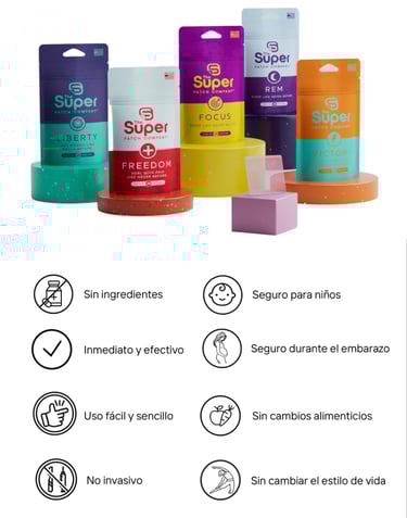Los parches SuperPatch no contienen fármacos, químicos ni sustancias activas y no liberan nada al cuerpo.